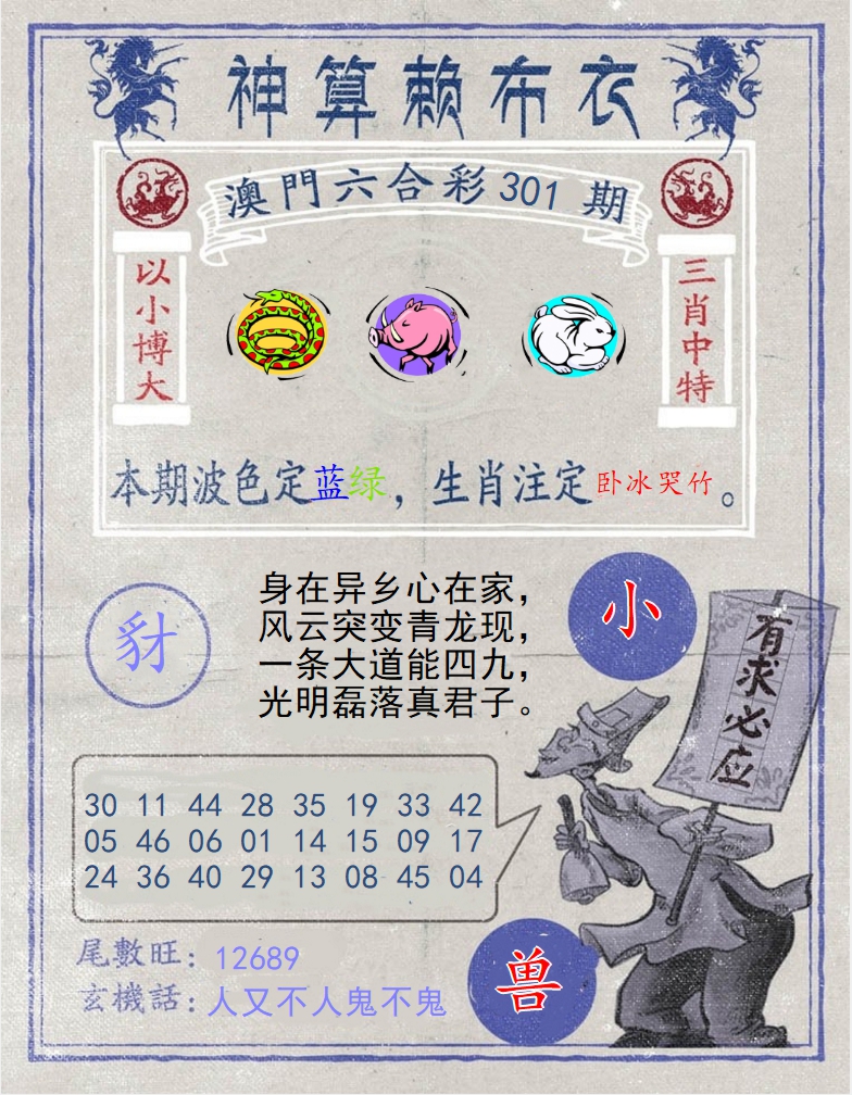 | 300期:山野之外胜桃源,好运财神通玄机,所有资料全收录,二七组合在中间 |